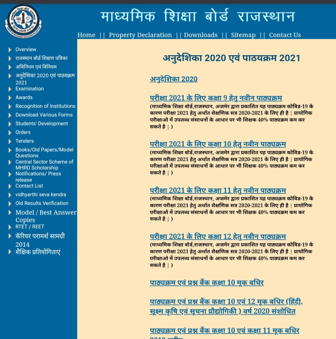 Board of Rajasthan New Curriculum 2020-21