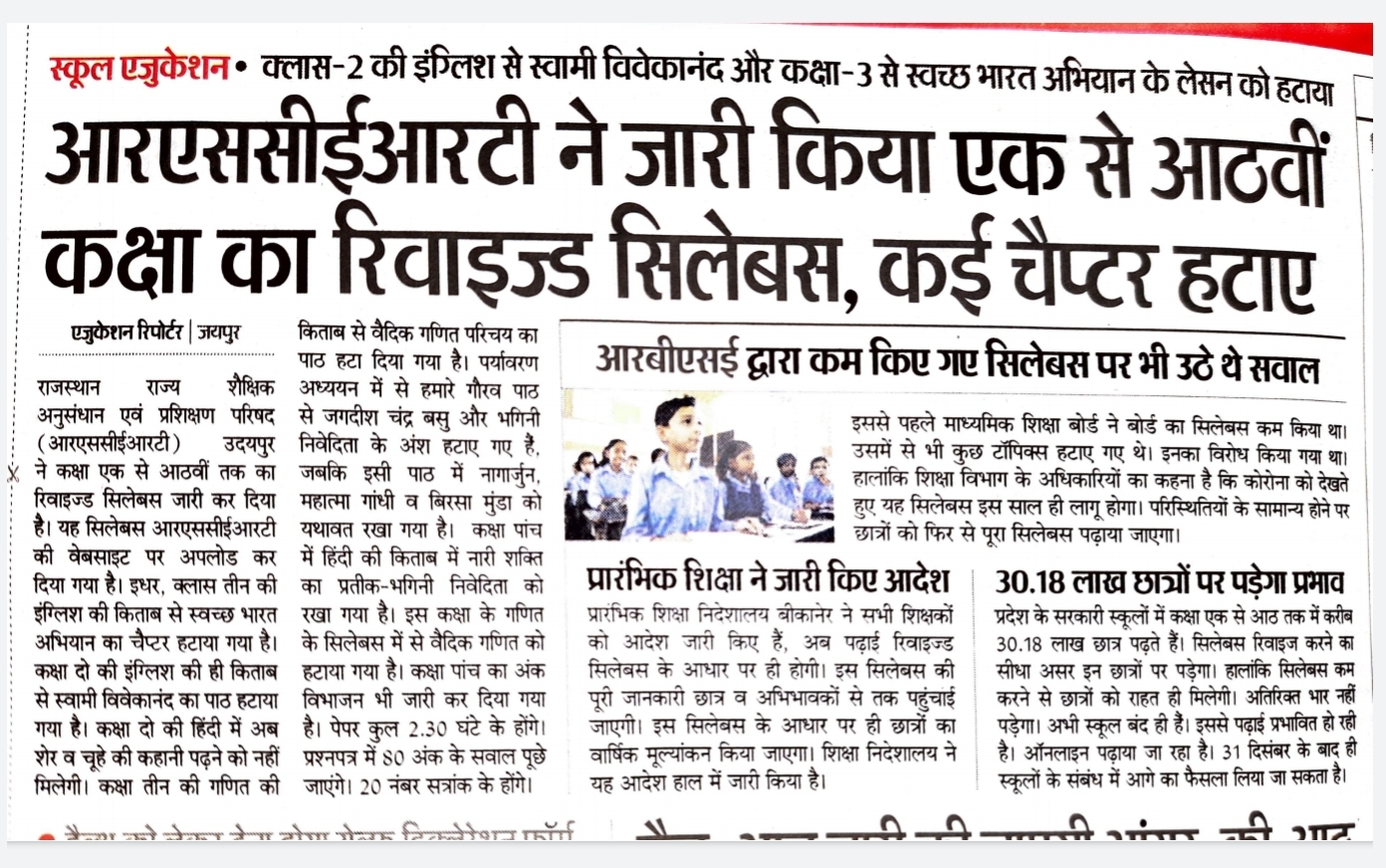 राजस्थान राज्य शैक्षिक अनुसंधान एवं प्रशिक्षण परिषद, RSCERT उदयपुर ने एक से आठवीं तक कार्य वाइज सिलेबस जारी कर दिया है |