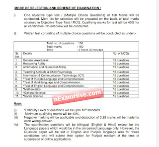 Chandigarh NTT Nursery Teacher Vacancy Exam scheme & Syllabus