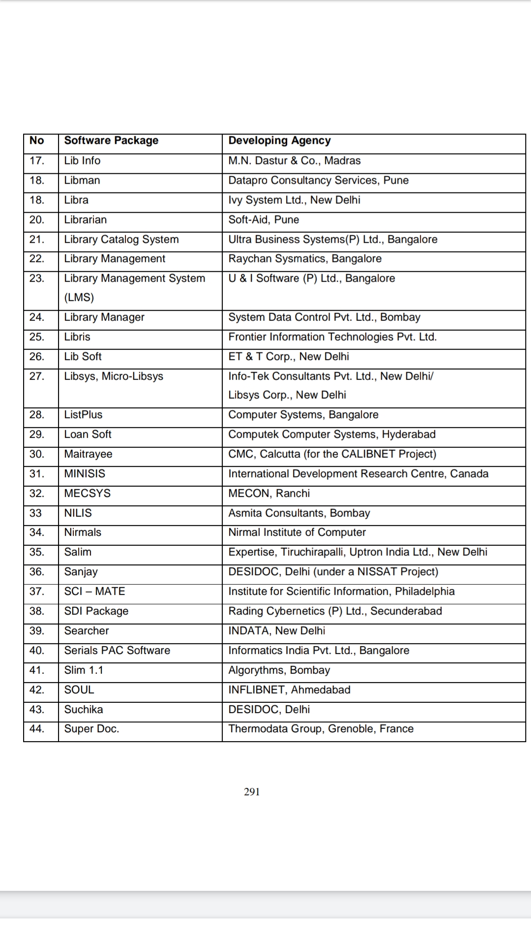 कई लाइब्रेरी सॉफ़्टवेयर पैकेज डिज़ाइन किए गए हैं और स्वदेशी रूप से विकसित किया गया है और इनका उपयोग विभिन्न पुस्तकालयों और सूचना केंद्रों में किया जा रहा है।