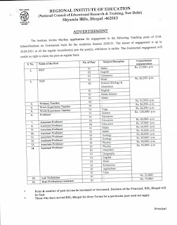 NCERT ( Bhopal) INVITES APPLICATIONS FROM THE ELIGIBLE CANDIDATES FOR THE FOLLOWING TEACHING AND NON-TEACHING POSITIONS TO BE FILLED BY DIRECT RECRUITMENT.