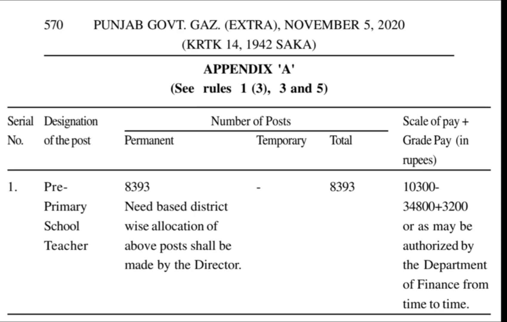 pre primary teacher vacancy in punjab 2020, pre primary teacher qualification in punjab