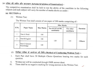 (a) SECTION-A (1) Written Test: The Written Test shall consist of one paper of 300 marks comprising of:-