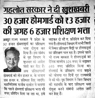 Rajasthan HomeGuard Allownace , 30,000 home guards will get 6000 training allowance instead of 3000,