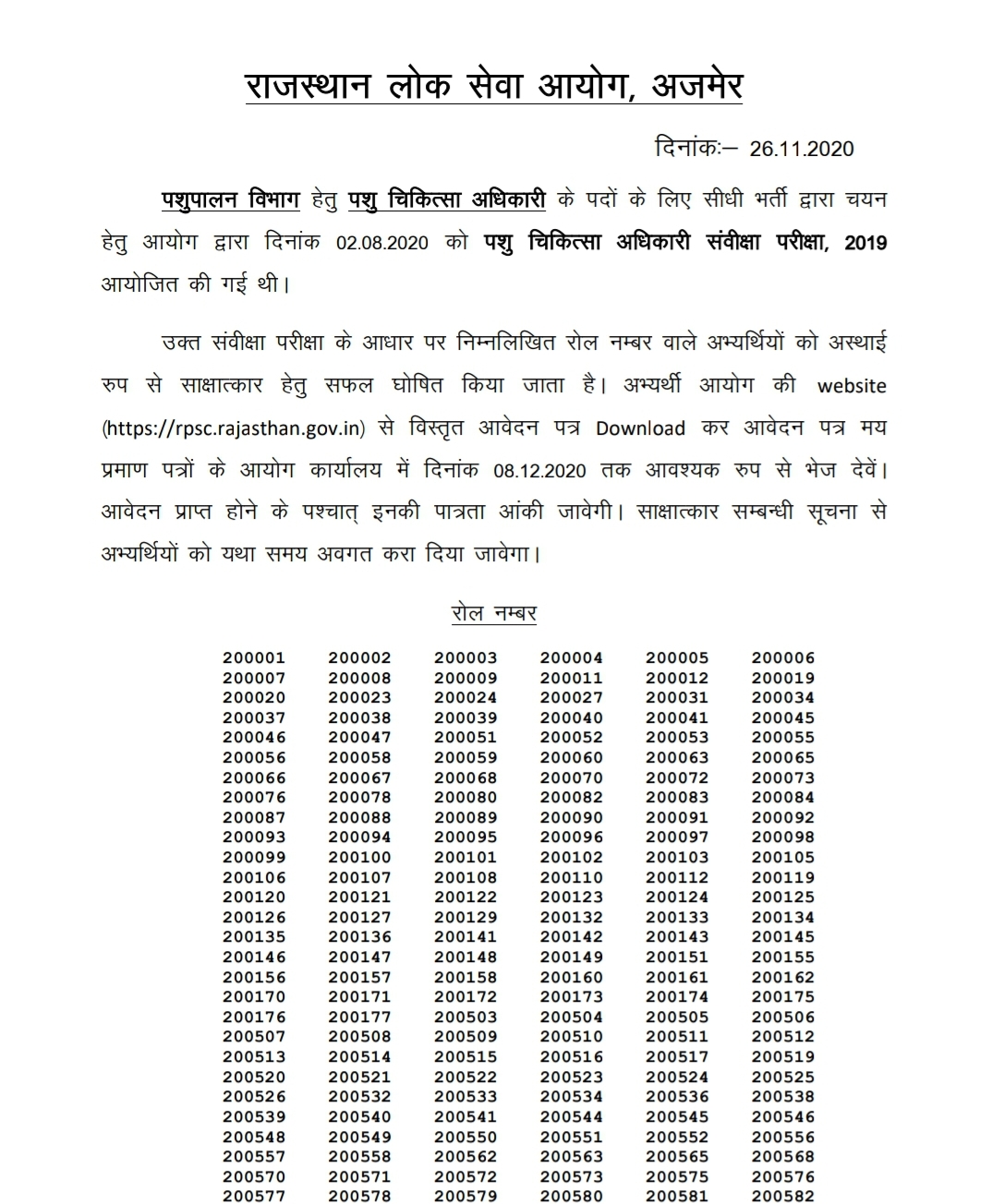 RPSC Veterinary officer Result Out, RPSCVeterinary officer ANSWER KEY