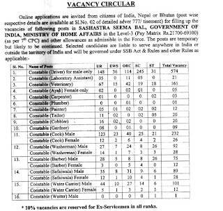 एसएसबी कांस्टेबल भर्ती 2020 का नोटिफिकेशन जारी कर दिया गया है केंद्रीय गृह मंत्रालय के अधीन सशस्त्र सीमा बल ने 1541 पदों पर कॉन्स्टेबल रैंक पर विभिन्न ट्रेड की रिक्तियों पर नोटिफिकेशन जारी किया है एसएसबी कांस्टेबल रिक्वायरमेंट 2020 के अंतर्गत ड्राइवर , कारपेंटर , प्लंबर , वॉशरमैन , लेब असिस्टेंट पशु चिकित्सक नोटिफिकेशन ऑनलाइन फॉर्म SSB Constable Recruitment 2020 for 1541 Post Online form की अंतिम तिथि को बढ़ाकर 20 दिसंबर 2020 कर दिया है . अब अभ्यर्थी इसके लिए 20 दिसंबर तक ऑनलाइन आवेदन कर सकते हैं . एसएसबी रिक्वायरमेंट 2020 भर्ती का नोटिफिकेशन , ऑनलाइन फॉर्म , योग्यता , आयु सीमा मैंने संपूर्ण जानकारी नीचे दी गई है |